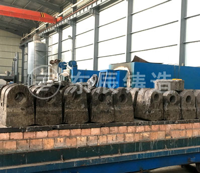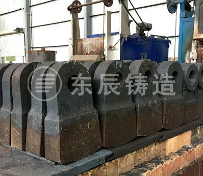 东辰铸造锤头除碳、铬、硅、锰、铜、钼等元素外,另加入钒、钛、锑、稀土等元素以起到细化晶粒,提高耐磨度的作用。